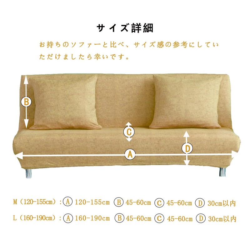 • Size: M: 47.2 - 61.0 inches (120 - 155 cm), L: 63.0 - 74.8 inches (160 - 190 cm), Package Includes: Sofa Cover, 2 Cushion Covers (17.7 x 45 cm). Please measure your sofa before purchase and make sure your reference size. Please note that there may be a little color difference due to the different production lot