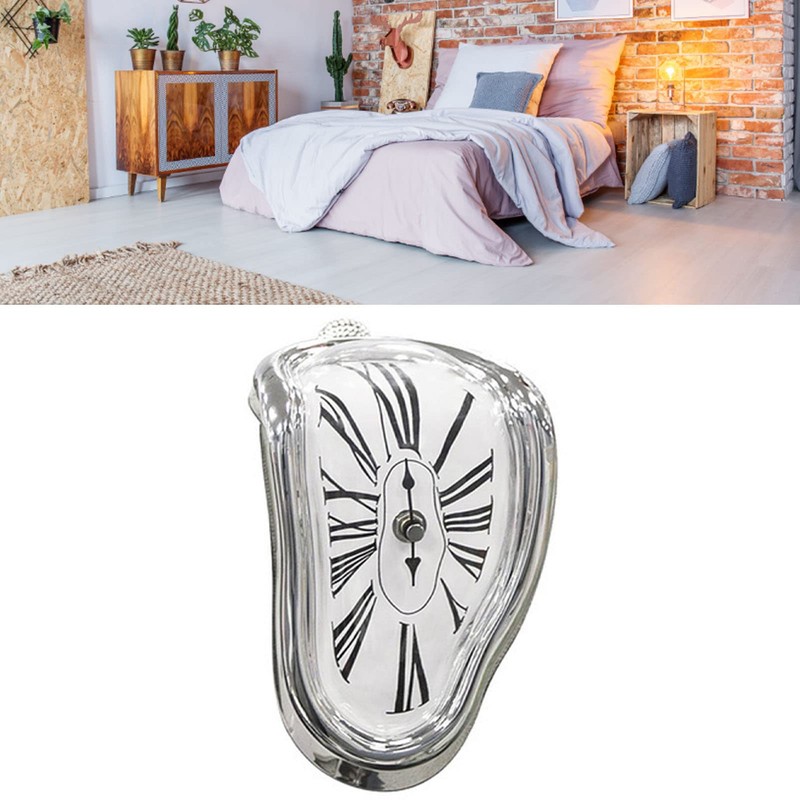 Tnfeeon Reloj Derretido, Divertido Reloj Derretido Preciso para Escritorio (Plata)