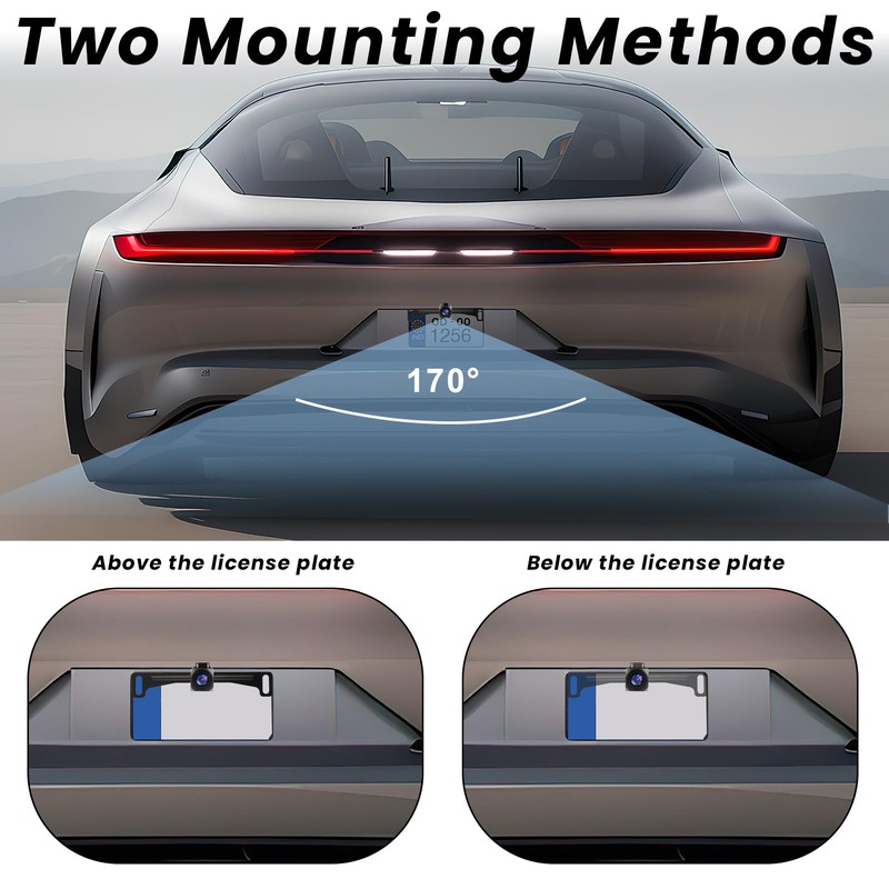- Universal License Plate Integration System: Includes precision-engineered stainless steel mounting bracket with 15° tilt adjustment for optimal viewing angles. The low-profile design installs flush against license frames without plate obstruction. Complete with 26ft RG59 coaxial cable featuring gold-plated connectors and vehicle-specific routing clips for seamless integration with aftermarket/OEM head units and mirror displays