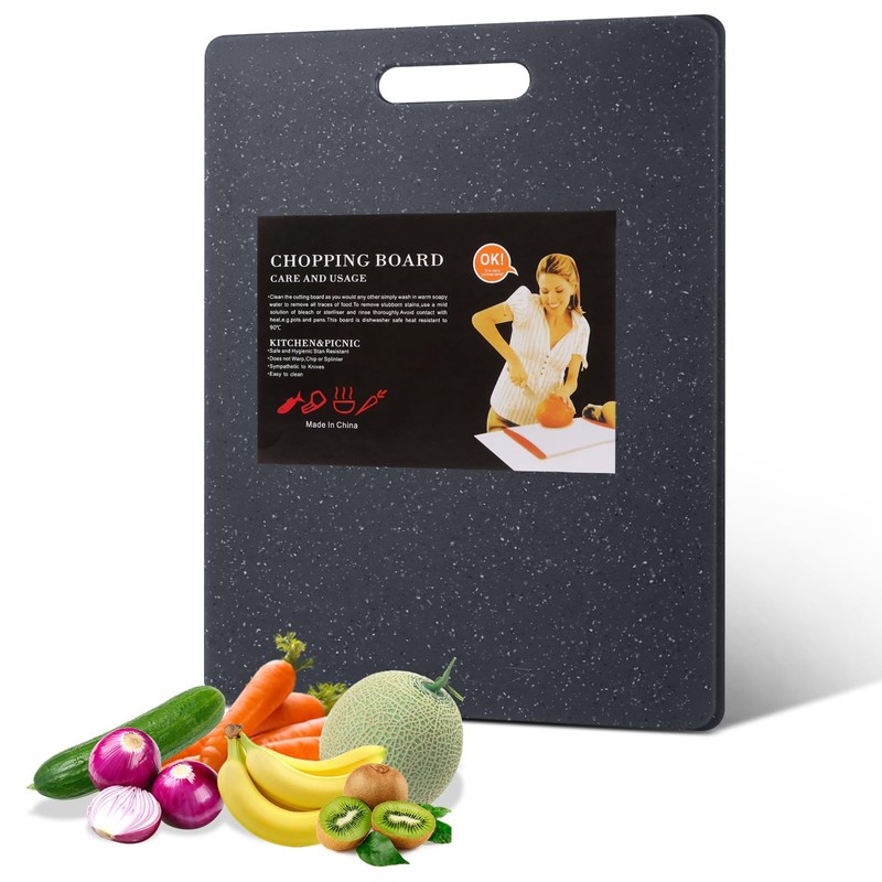 TNOMSNO Schneidebrett, 36 x 27CM Schwarz Schneidebrett Kunststoff Schneidebrett im Granit-Look, Schneidebretter BPA frei, Schneidebrett für Gemüse, Fleisch