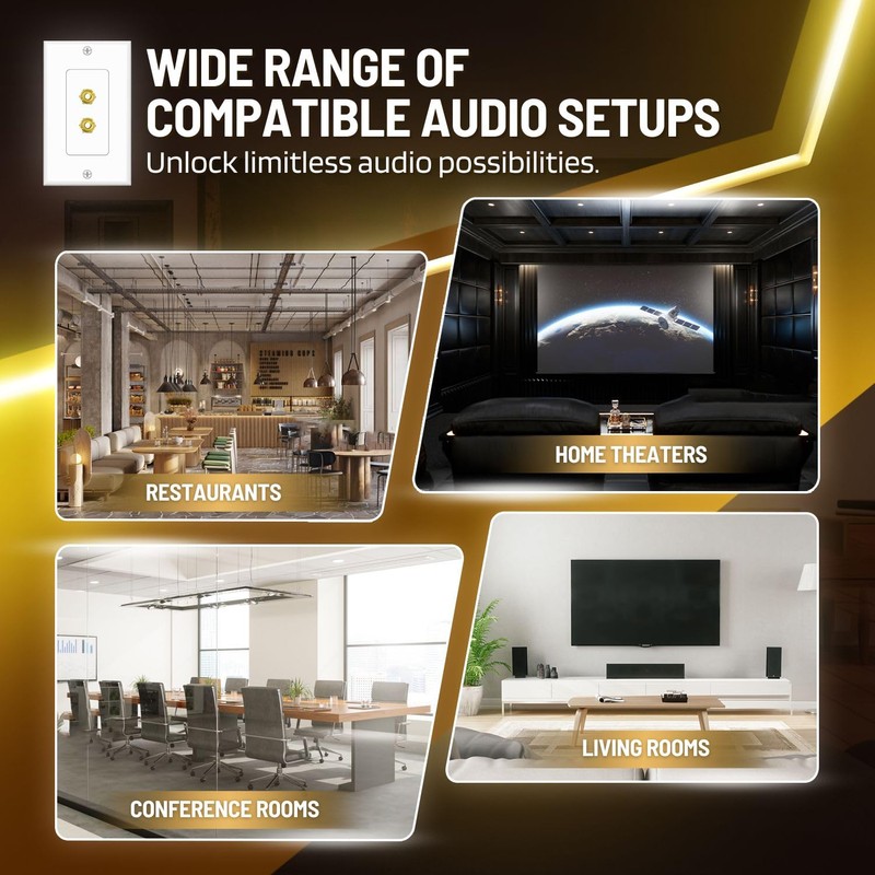 - Durable Gold-Plated Terminals: Engineered to resist oxidation and corrosion, this speaker and subwoofer wall plate ensures a reliable connection, offering authentic audio distribution that lasts