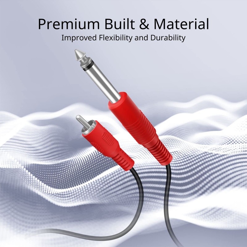 1 x 6.3 mm jack to RCA cable, RCA audio cable - 1 m, 2 x 6.3 mm TS plug to 2 x RCA plug, gold-plated adapter cable, mono jack cable, for amp, mixer, speaker and stereo phono system.