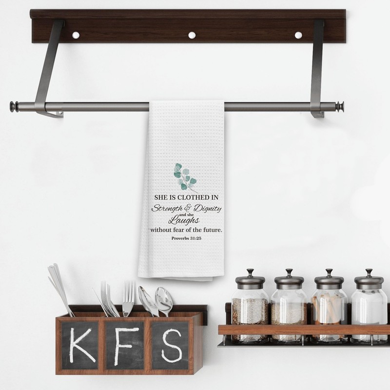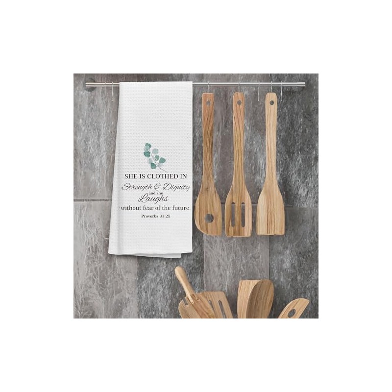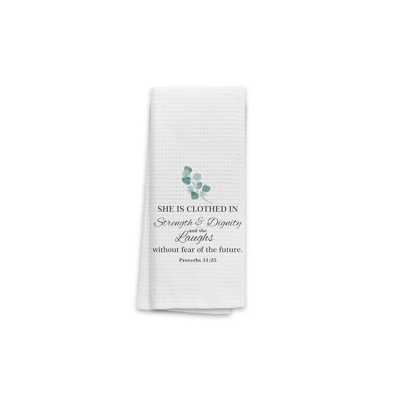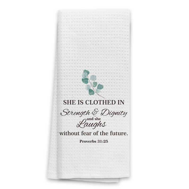 TNUW She is Clothed with Strength and Dignity Kitchen Towels 16X24In, Inspirational Christian Gifts Dish Towels, Religious Gifts for Women Men, Faith-Based Gifts, Christian Kitchen Bathroom Decor