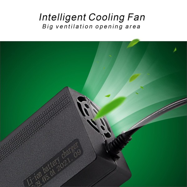 - 5 características para prolongar la vida de la batería. 1. Adopta un chip avanzado, protección inteligente, más seguro. 2. Cargador de batería de litio inteligente y eficiente. 3. Ventilador de refrigeración integrado, evita eficazmente el fenómeno de carga y calefacción. 4. La carcasa está hecha de material ABS ignífugo de alta calidad. 5. Carga de sincronización de alto voltaje, IC inteligente controla el tiempo de carga de voltaje más alto, evitando eficazmente daños a la batería