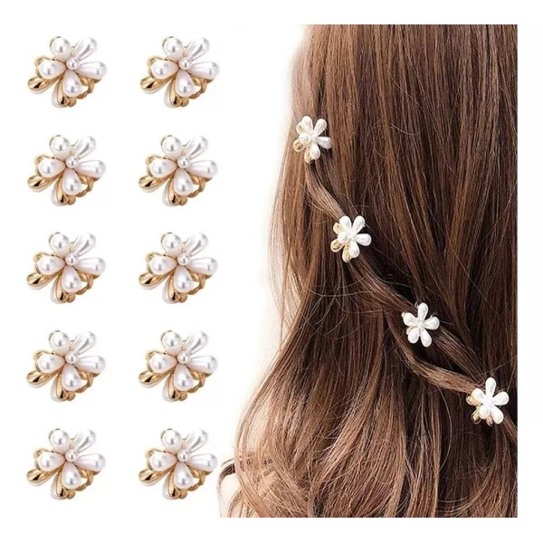 TO 10 Clips De Garra Pelo Con Perlas Pequeñas Diseño De Flores