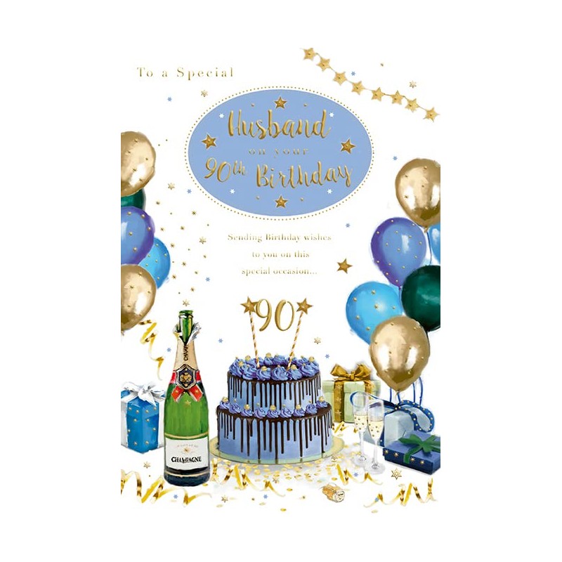 - On the front the card reads: For A Special Husband Happy 90th Birthday With Love