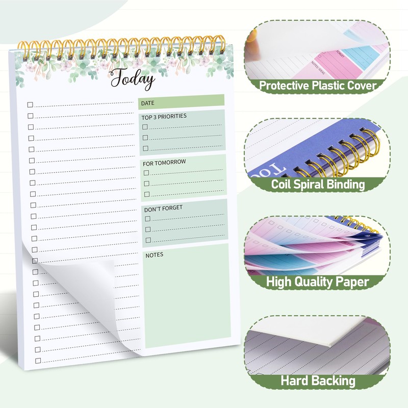 - DURABLE AND STYLISH DESIGN - Featuring a clear cover and sturdy spiral binding, this to do list pad not only looks professional but also withstands daily use, keeping your important lists intact and easily accessible