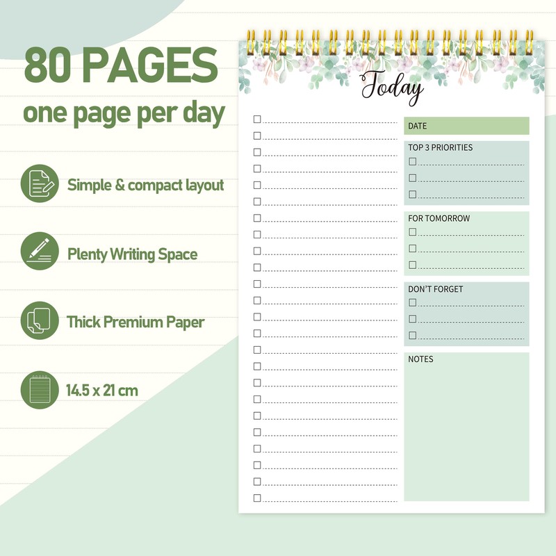 - PREMIUM PAPER FOR SMOOTH WRITING - Enjoy 80 sheets of 80GSM thick paper in our daily to do list notepad, designed to prevent bleed-through and enhance your writing experience for clarity and comfort