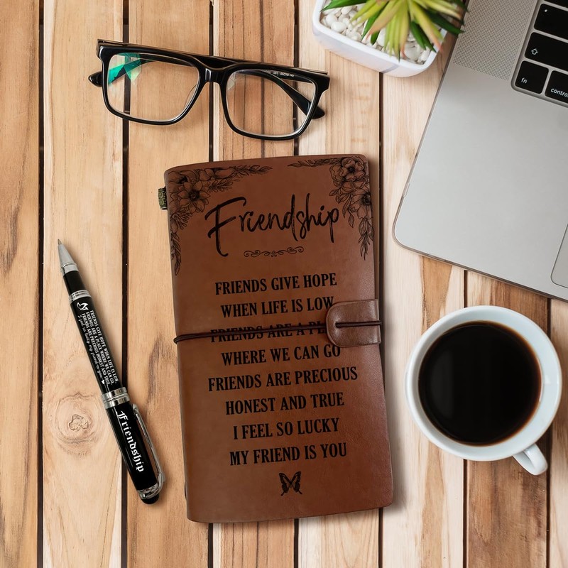 To My Friend Leather Journal, Engraved Gift Pen, Roller Ballpen, Friend Gifts for Women, Friendship Gift, Birthday Christmas Gift, Leather Notebook and Pen Gift for Friend, 160 Pages Notebook, [unknown_binding]