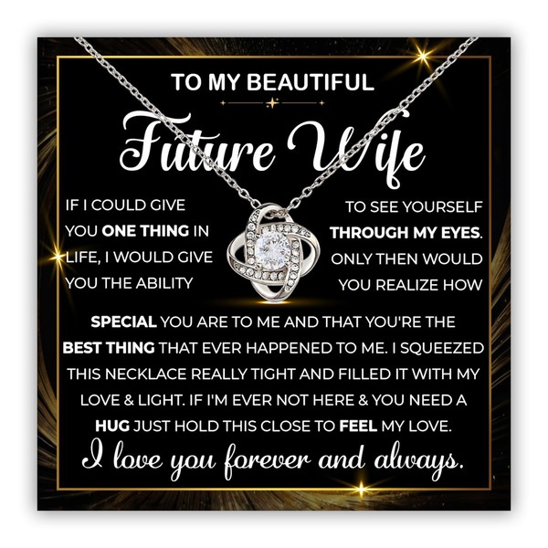 - 【FLEXIBLE】: Adjustable chain can help you find a comfortable length. The chain is dainty, but durable and will not break easily. The unique necklace has love knot pendant to express your love and encouragement to your future wife. Love Knot symbolize strength, protection, infinite love. Simple and elegant.