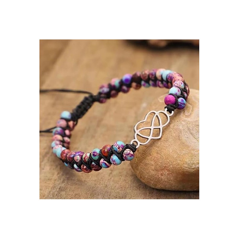 To My Granddaughter/Daughter/Mom Infinity Forever Love Heart Bracelet,Adjustable Natural Emperor Jasper Stone Beaded Wrap Bracelet Duoble Layer for Mind Peace,Bracelet for Women