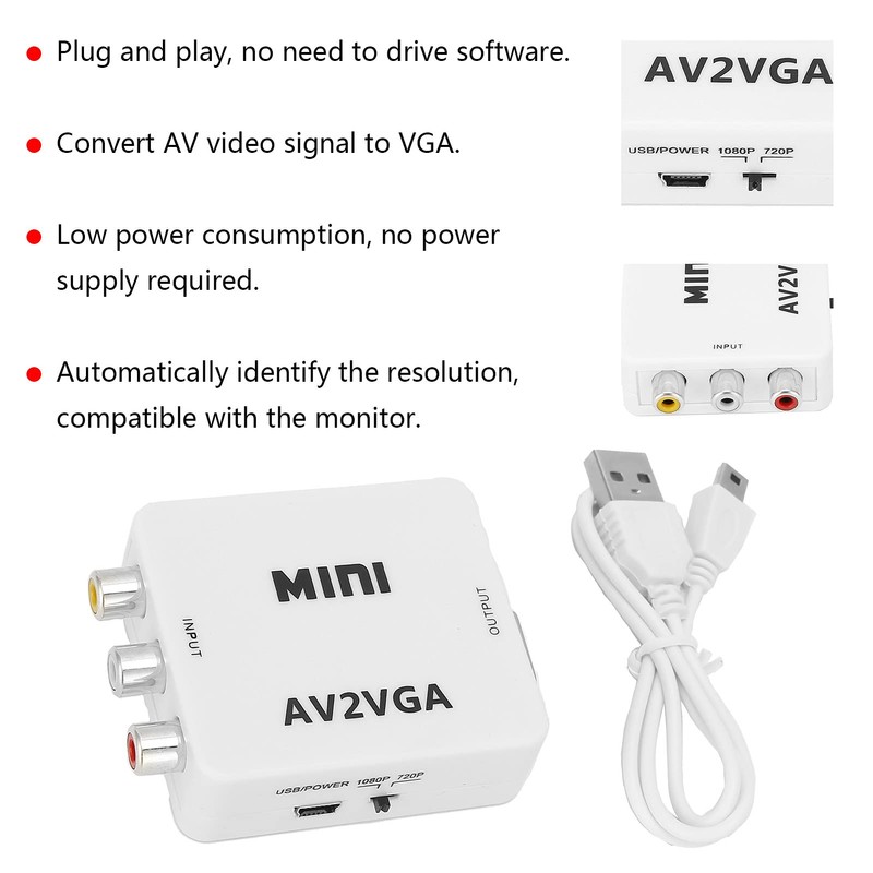 - Convert AV video signals to VGA, stable signal, no delay, computer to TV video adapter.