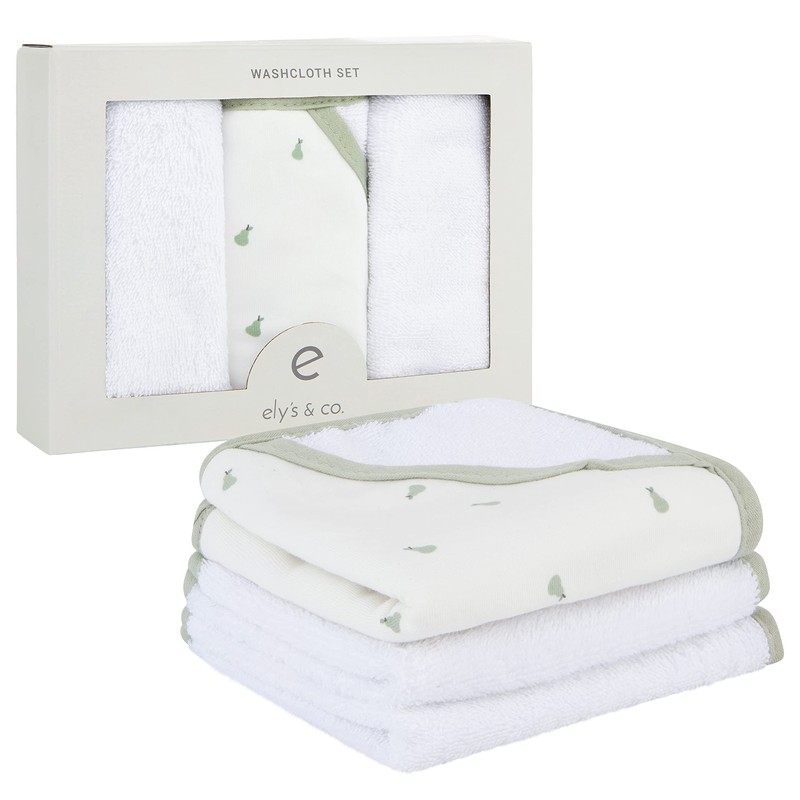 - El juego de toallas de rizo de algodón de Ely's & Co. incluye 3 paños de 25,4 x 25,4 cm. Empaquetado en una caja elegante, compacta y lista para regalo, este juego esencial para el baño es el regalo perfecto para baby shower