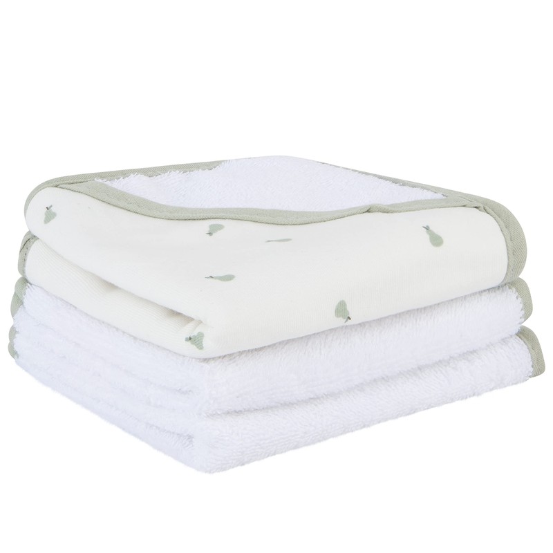 Toalla con capucha y paño de lavado (peras salvias, 3 lavadores)
