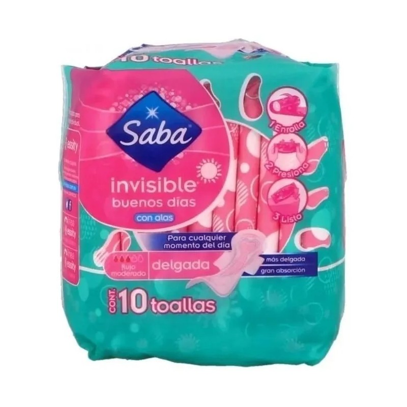 Toallas Sanitarias Saba Invisible Buenos Dias Con Alas 60 Pzs
