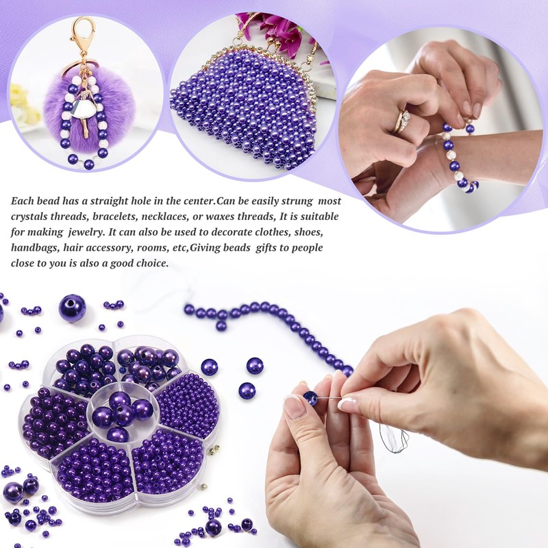 TOAOB 1160pcs Pearl Beads Purple Round Loose Imitation Pearls Acrylic Beads 3mm 4mm 5mm 6mm 8mm 10mm 12mm with 1 Roll Crystal Wire for DIY Craft Decoration Jewellery Making