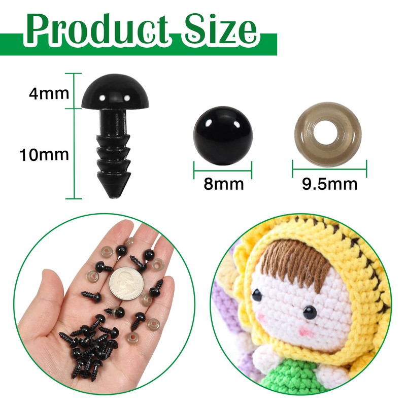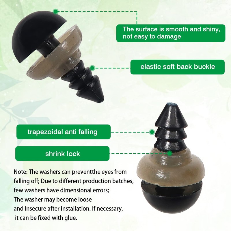 - Quantity:Item contains 150pcs plastic safety eyes and 150pcs washers,washers can prevent the eyes from falling out