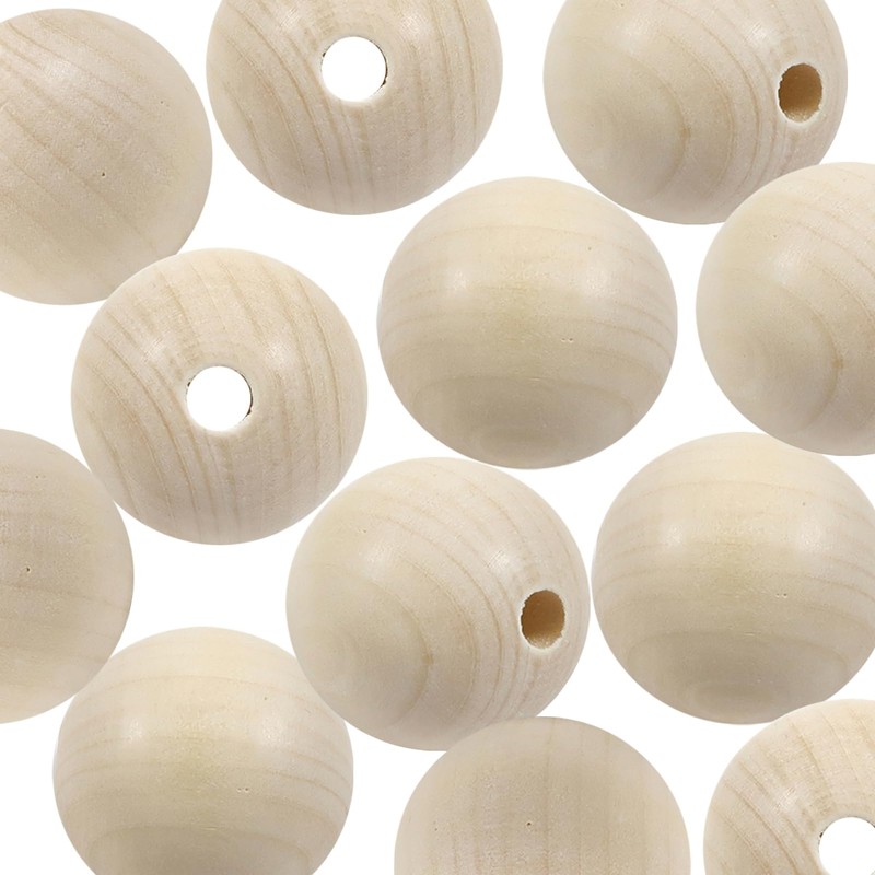 Toaob 30 mm Pack of 12 Wooden Beads, Round Natural Loose Spacer Beads for DIY Jewellery Making