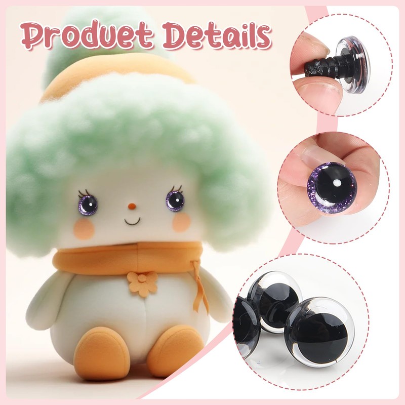 - Material: Colorful glitter safety eyes are made of plastic. These safety eyes are glossy and smooth in appearance, not easy to bend. Can be used for a long time