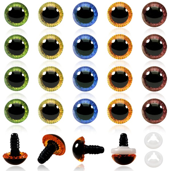 TOAOB Pack of 20 Safety Eyes for Crochet Animals, Doll's Eyes, Glitter, 15 mm, Plastic Craft Eyes, 5 Colours, Button Eyes with Washers, Doll, Puppet, Plush Toy