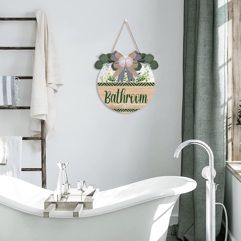 - The bathroom wooden wreath sign is perfect for birthdays, Valentine's Day, Mother's Day, Father's Day, Thanksgiving, Halloween, Easter, Christmas and other holidays.