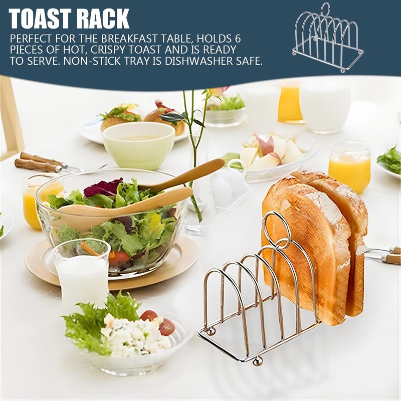- TOAST RACK: Our stainless steel toast and bread rack is a handy countertop accessory that holds up to 6 slices of hot, crispy toast. It is ideal for home breakfasts or commercial establishments such as bakeries.
