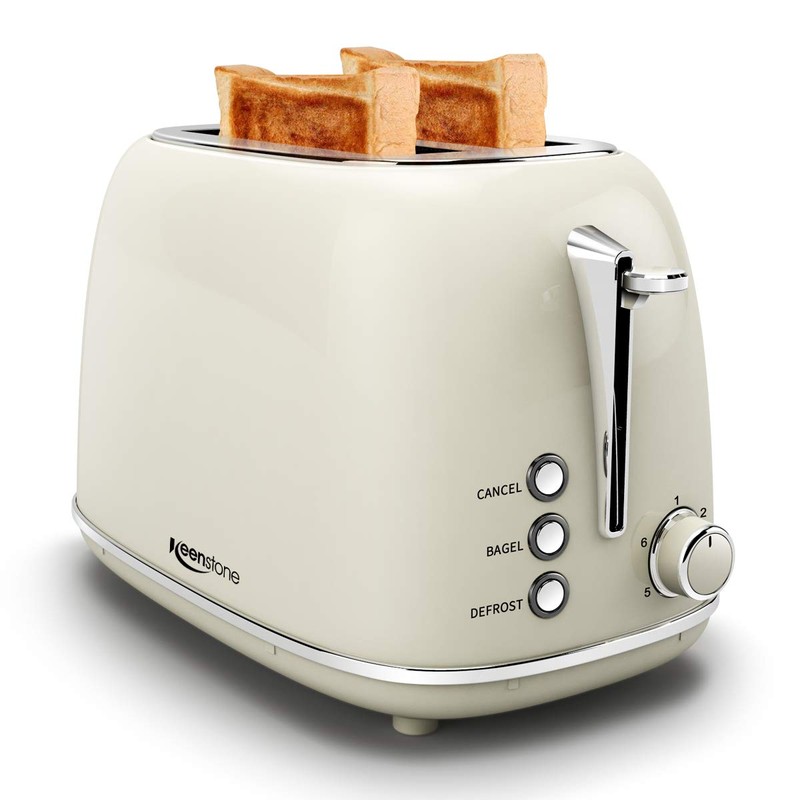 Toasters 2 Slice Retro Stainless Steel Toasters with Bagel, Cancel, Defrost Function and 6 Bread Shade Settings Bagel Toaster, Beige