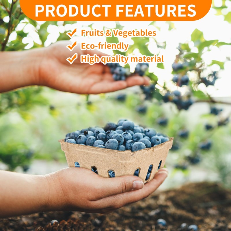 - 【Safe & Reliable】- The berry basket is made of pulp fiber material, which is lightweight and sturdy, reusable and recyclable, and the thickened material makes it last longer, safe to use, and can be used for a long time. Paper baskets are safer than plastic baskets and foam baskets.