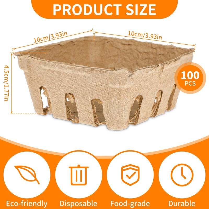 - 【Sufficient Quantity】- You will receive 100 mini pulp fiber berry baskets, suitable for storing blueberries, raspberries, strawberries, blackberries, raspberries, cherries, small tomatoes, etc. The quantity and capacity are enough for you to use or place at home, markets, grocery stores, and roadside stores, and many other places, which can better display the products.