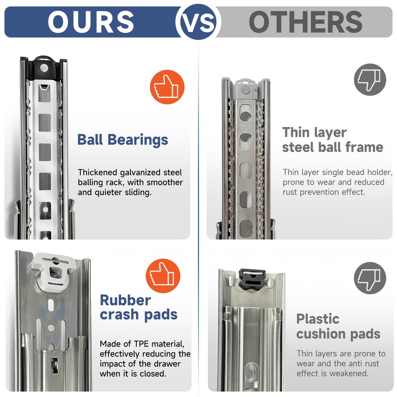 - 【Ball Bearing Design】 Thickened steel Ball bearing design ensures smooth and silent drawer glides.We focus on quality and after-service, ensuring that the product you purchase will serve you well for years to come.