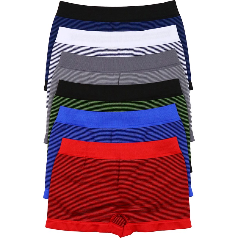 ToBeInStyle Boy’s Pack of 6 Seamless Boxer Briefs - Simple Thin Stripes - Medium