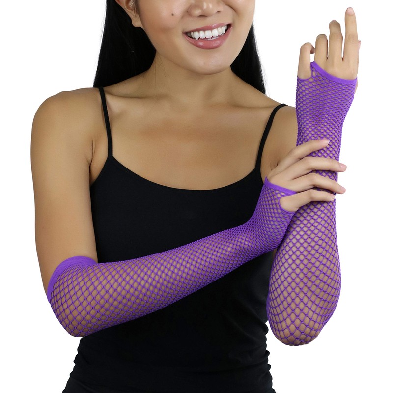- đź’• Featuring: A tight fishnet woven pattern, with an opaque band around the arm opening for security. Half fingered design to complete the glove look. Fishnet Material.