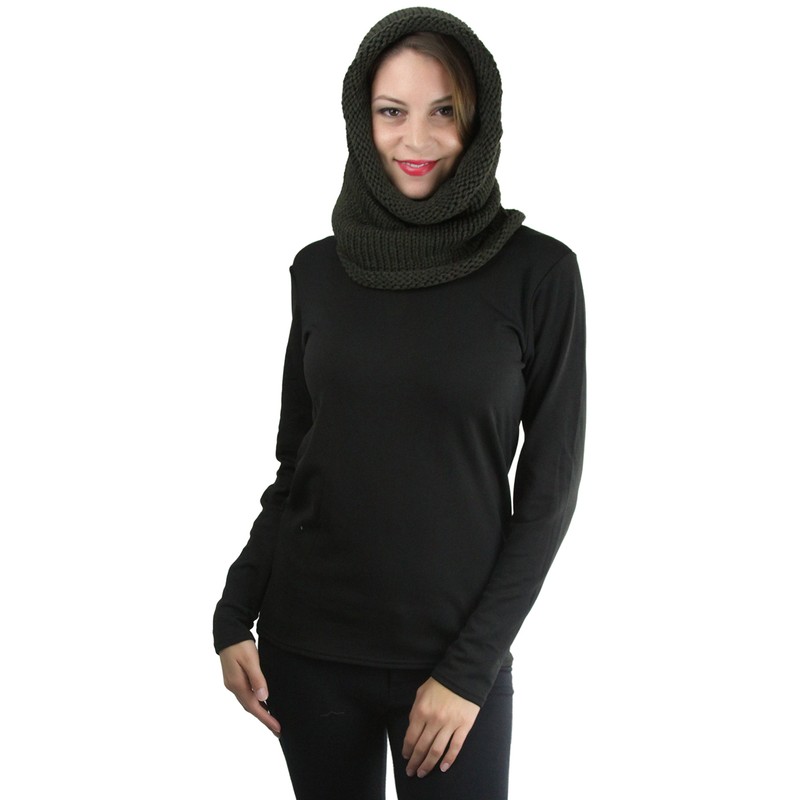 | Color: | Single: Two Part Infitinity Pocket Knit Scarf - Olive Green |