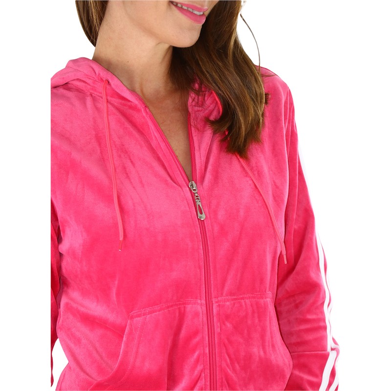 ToBeInStyle Women's Velour Tracksuit Zip-Up Hooded Jacket and Matching Pants, Side Double Stripe Soft Hooded Velour Track Set W/ Cuffed Pants - Coral, 2X