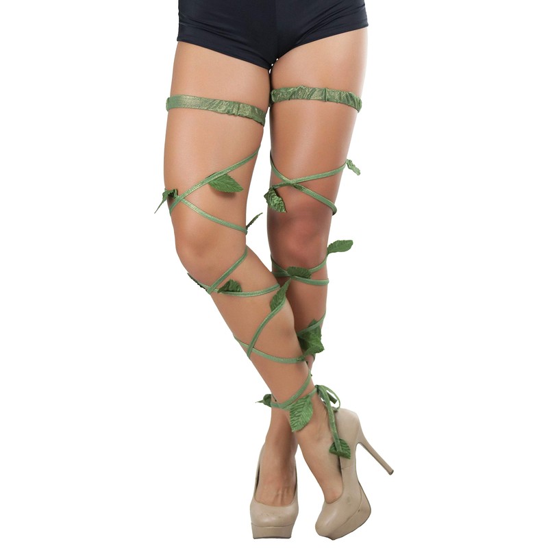 ToBeInStyle Womens Elegant and Fun Rave Lace Top Leg Garter or Garter Leg Wrap Set, Summer Festival Ivy Wrap - Green, One Size