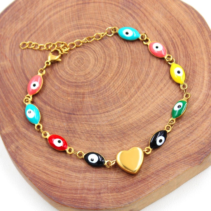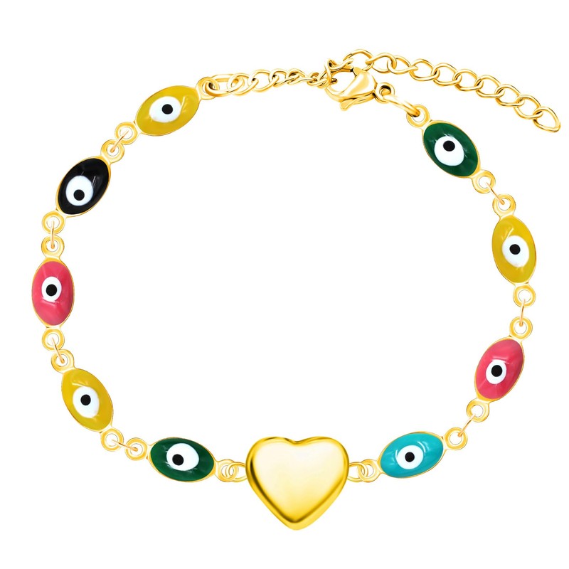 6. Key words: Platinum/gold plated bracelet, heart-shaped bracelet, enamel evil eye bracelet, adjustable size bracelet, meaningful gift.