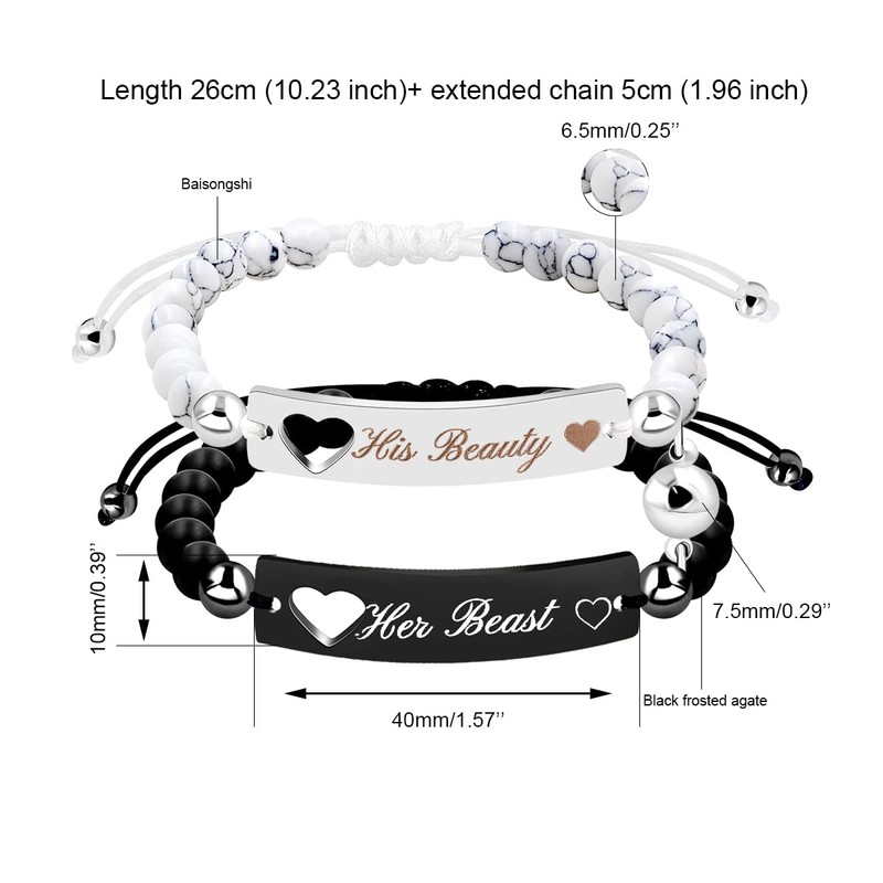 Tobestu Her Beast and His Beauty Bracelet Set Couples Heart Bracelet Mutual Attraction Bracelets Distance Gifts for Women and Men