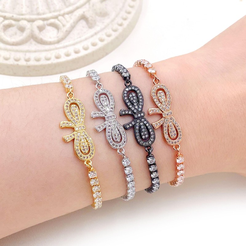 - 1. Design: This tennis bracelet features an exquisite bow design, adding a touch of fashion and elegance to the classic tennis bracelet look. The bow shape symbolizes love and happiness, suitable for various occasions to wear and showcase female charm.