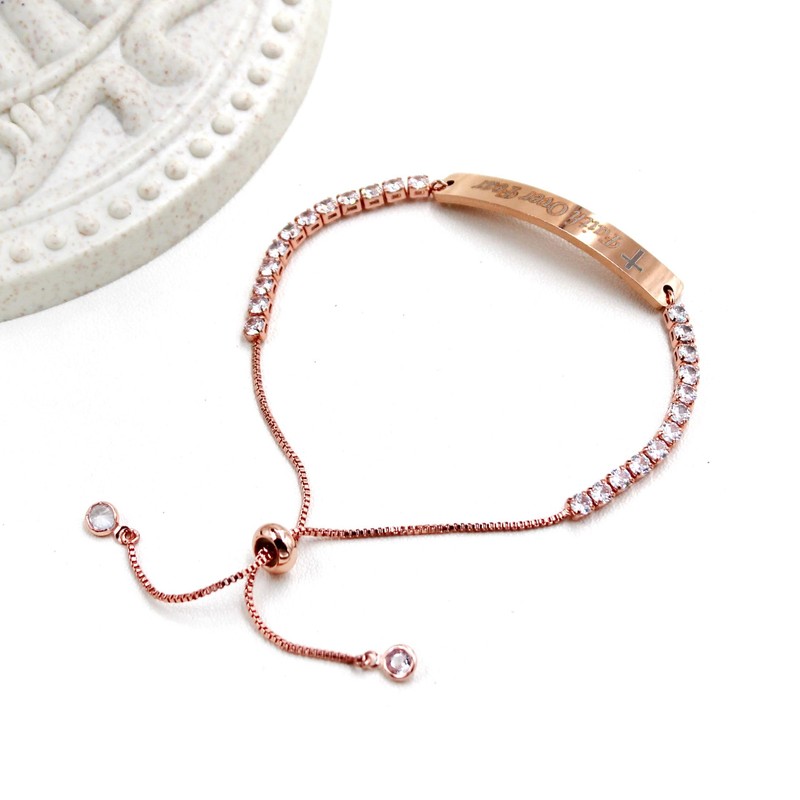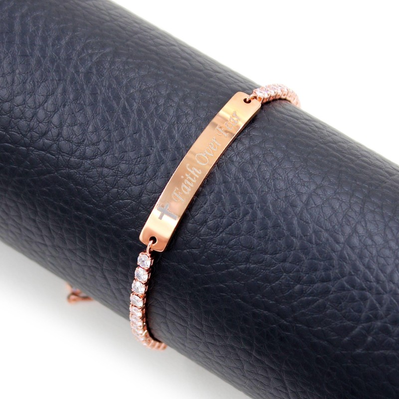Tobestu Rose Gold Plated Cross Tennis Bracelet - Faith Over Fear Inspirational Jewelry for Women Y4390