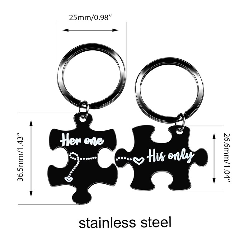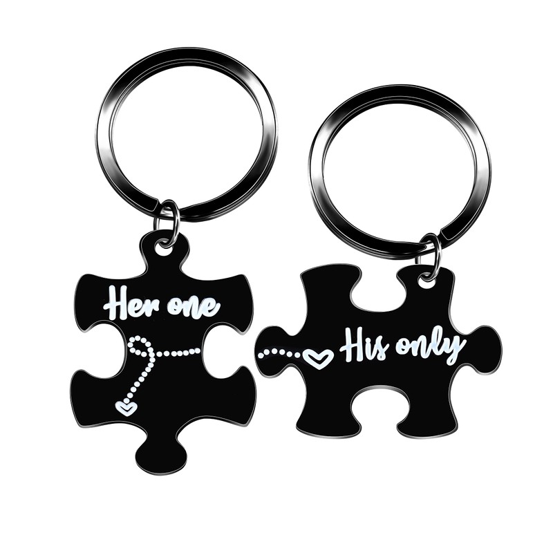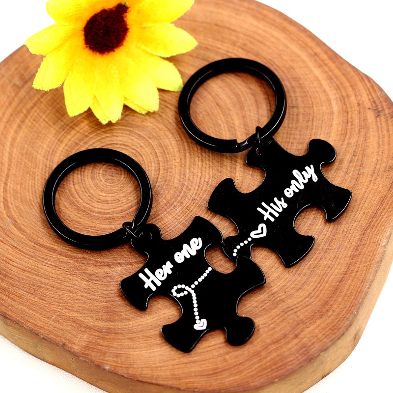 Tobestu Stainless Puzzle Matching Keychain Set Couples Romantic Valentines Gifts for Boyfriend and Girlfriend (Her One His Only)