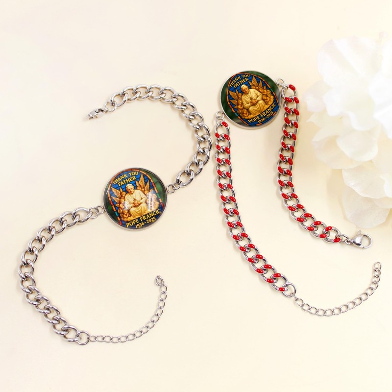 【Keywords】: pope charm bracelet, Cuban link religious bracelet, enamel pope jewelry, adjustable faith bracelet, unisex Catholic bracelet, Vatican style chain.