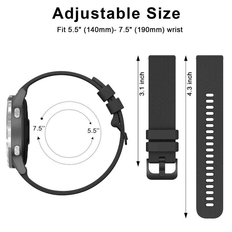 【Seamless Fit & Easy to install】 18mm quick release silicone replacement bands comes with pins on two ends, which locks onto Venu 2S watch replacement band / Venu 3S watch band Interface precisely and securely, easy to put on and change-out in seconds, NO tool is required.