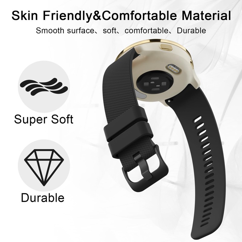 - 【Unique Design】 The Premium Waterproof Material soft sport wristband with a buckle clasp for quick and easy adjustment. Suitable for 6.3"- 8.7" (160mm-220mm) wrist. Replacement for Venu 2S watch band / Venu 3S watch band for Women, Forerunner 255S/255S Music/265S band with a sturdy fastener, double-reinforced to prevent smartwatch from falling