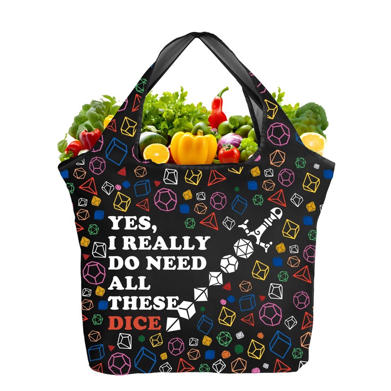 TOBGBE Dragon Role Play Game Inspired Gifts D Sword Foldable Reusable Grocery Bag Dragon Gamer Eco Friendly for Groceries (D Sword F TE)