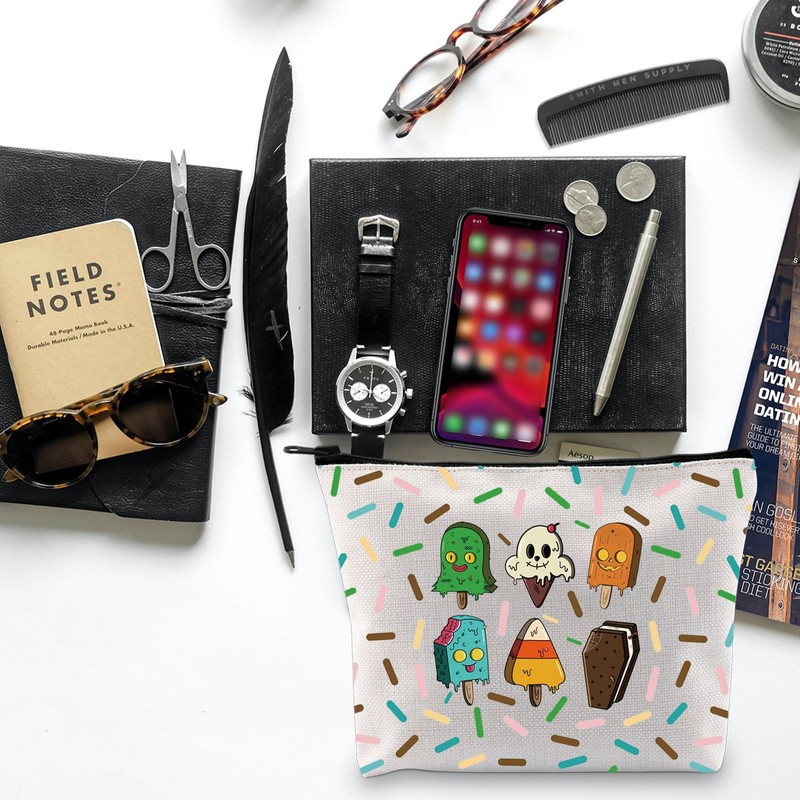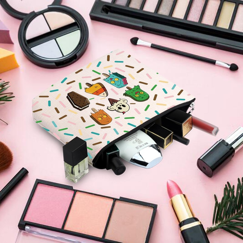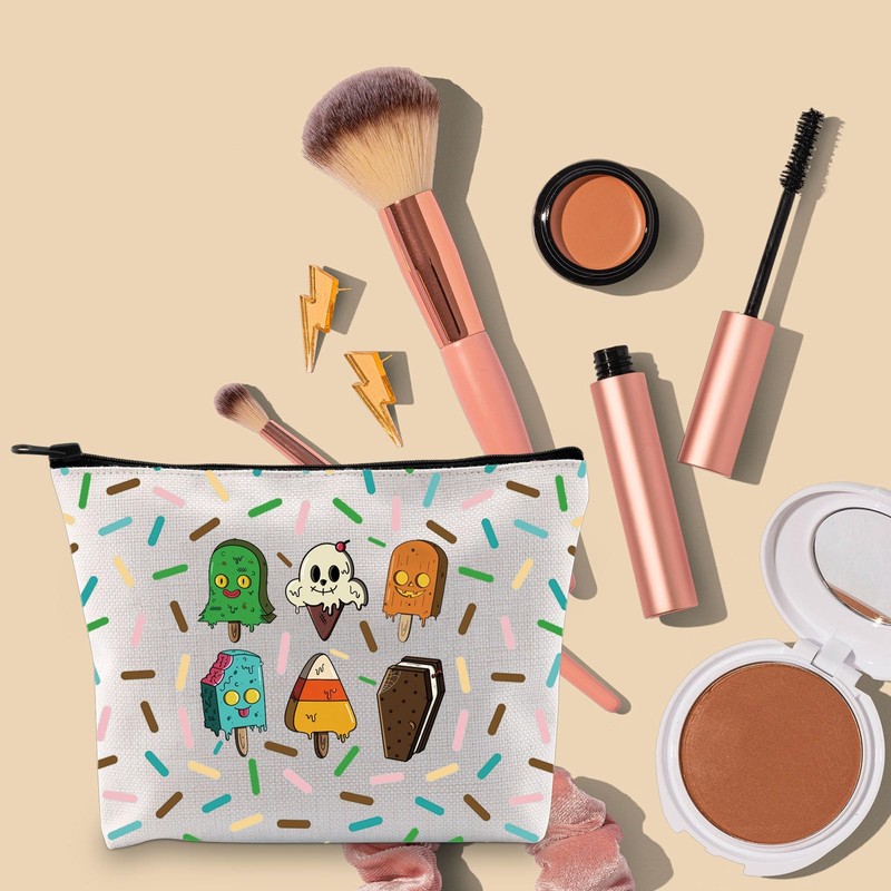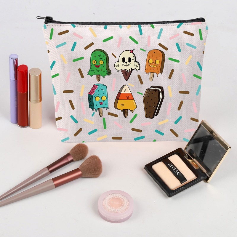 TOBGBE Funny Spooky Ice Cream Idea Gift Horror Characters Movie Inspired Zipper Bag Summerween Merchandise (Spooky Ice CA)