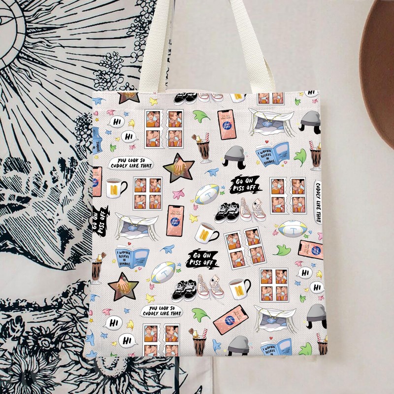TOBGBE Hi Hi Leaves TV Show Inspired Canvas Bag Comics Lover Gift TV Show Merchandise Nick and Charlie Gift (Hi Romance Tote CA)