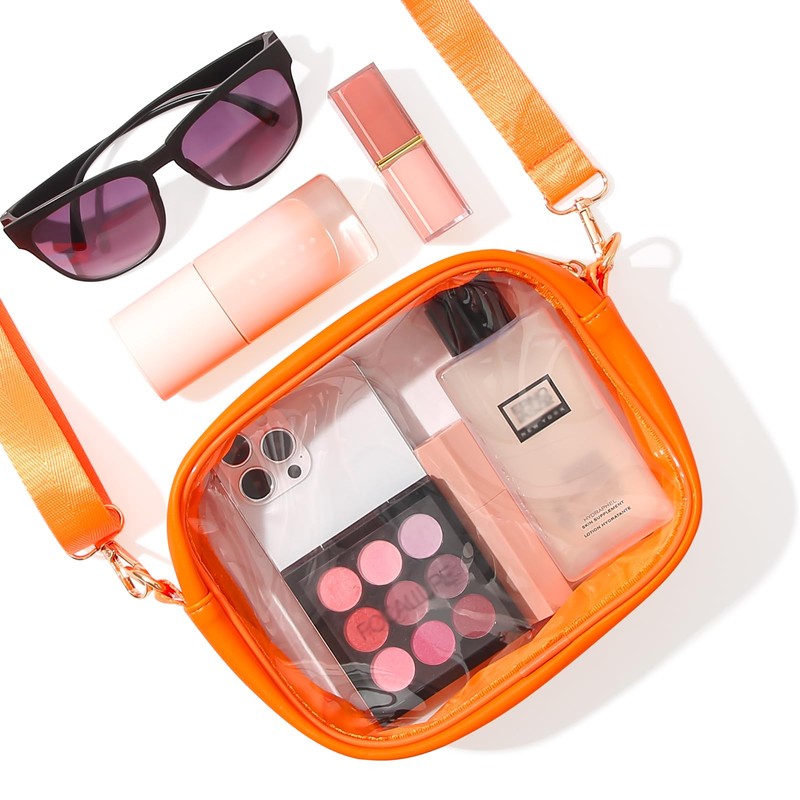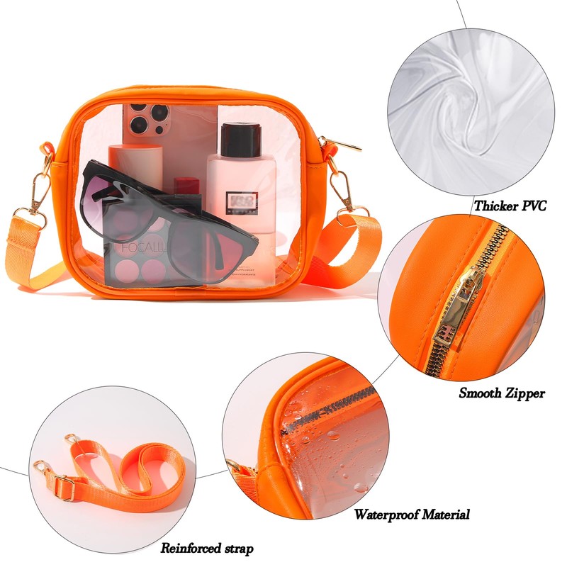 TOBVZOO Clear Purse Crossbody Bag for Women Stadium Approved, Small Leather Clear Bag with Adjustable Strap for Concert Sports Events (Orange)