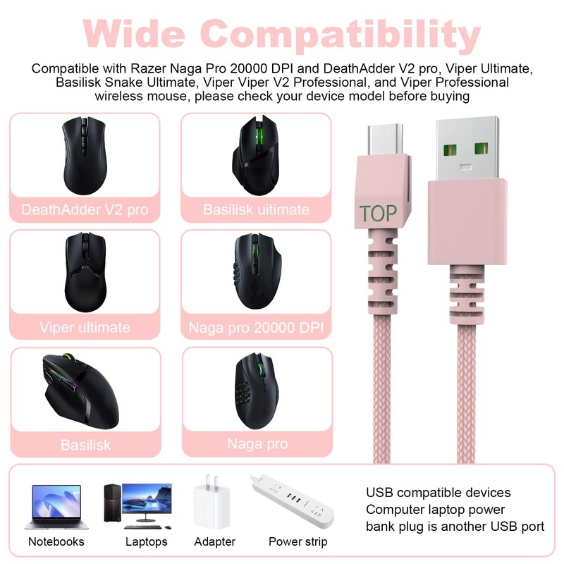 - Application: This is a perfect replacement charging cable widely compatible with Razer Deathadder V2 Pro, Naga Pro, Basilisk and Viper Ultimate Hyperspeed Lightest Cyberpunk 2077 Wireless Gaming Mouse