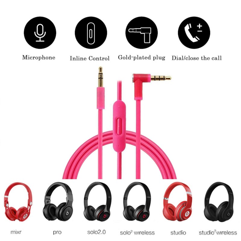 Tobysome Replacement Audio Cable Cord Wire with in-line Microphone and Control Compatible with Beats Headphones Solo, Studio, Pro, Detox, Wireless, Mixr, Executive, Pill (Pink)