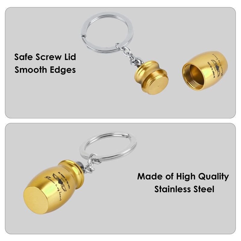 - Unique design: This mini keychain urn is made of stainless steel and comes with a keychain ring, making it easy to hang on a bag or keychain and carry the deceased's spirit with you.